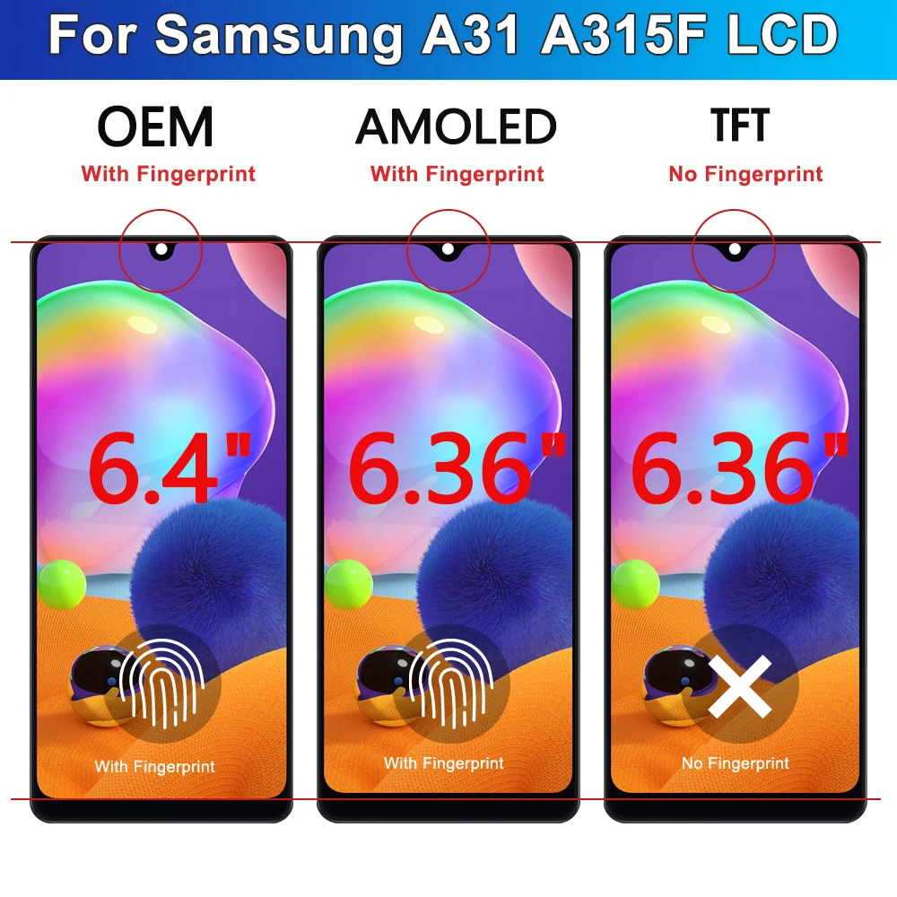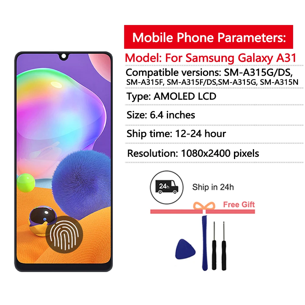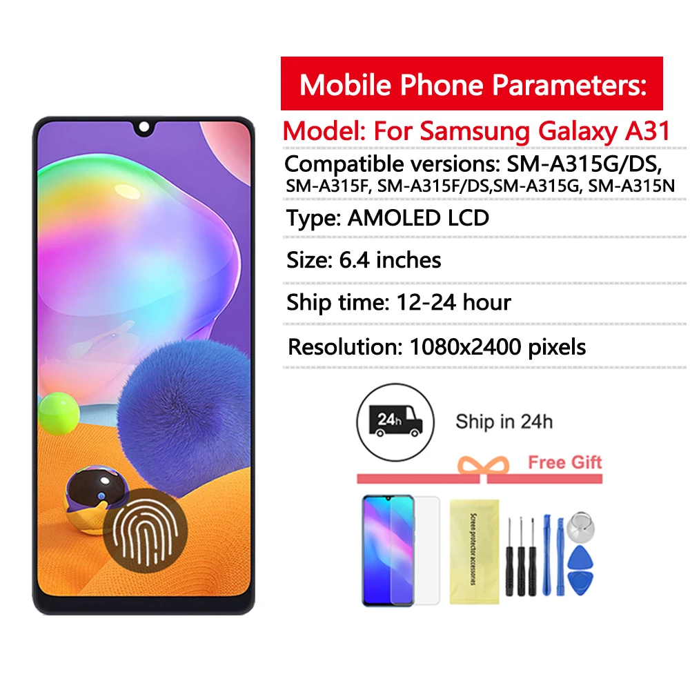 6.4 « Super AMOLED pour SAMSUNG GALAXY A31 A315 LCD écran tactile numériseur assemblée pour Samsung SM-A315F A315F/DS A315G
