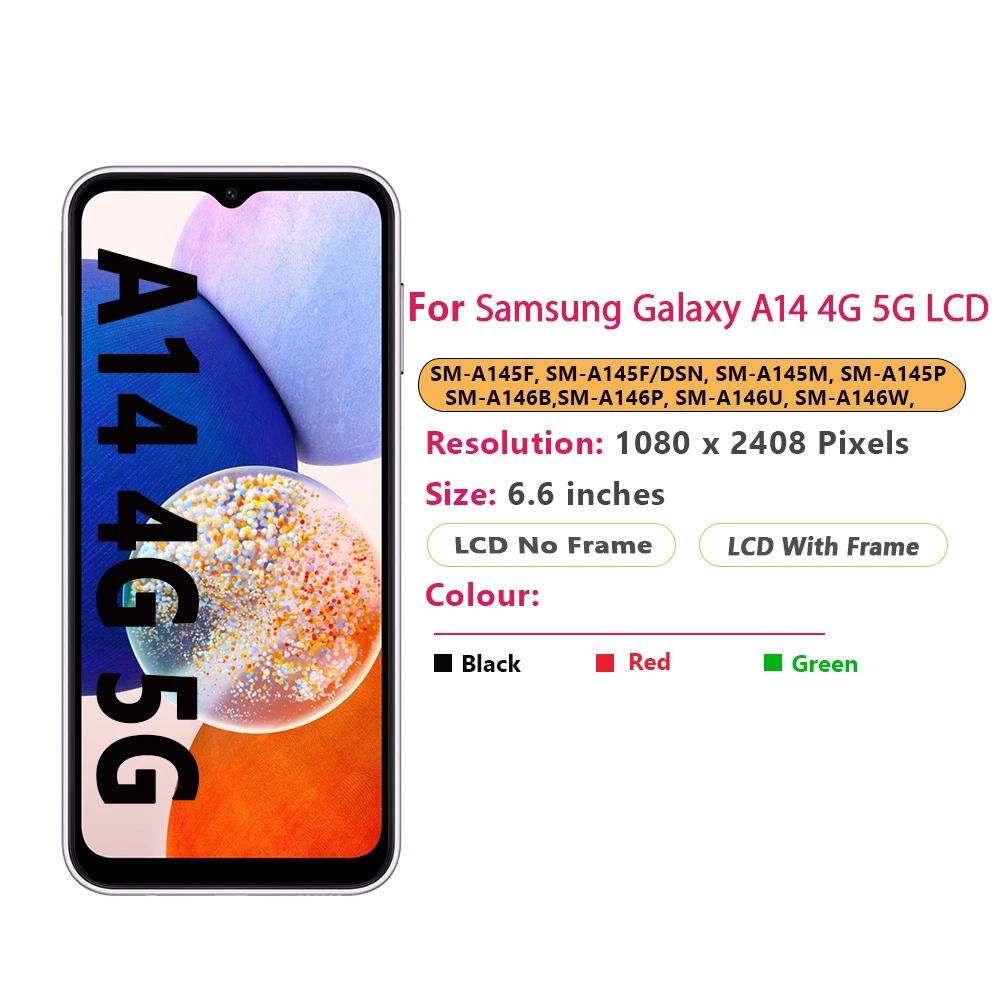6.6 « 100% testé pour Samsung Galaxy A14 4G 5G LCD écran tactile numériseur assemblée pour Samsung A145F A145R A146U A146B LCD