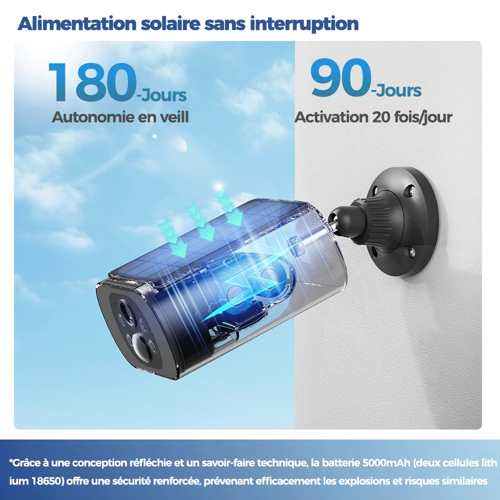 ALEVIO Caméra Solaire 2.5K WiFi PIR Vision Nocturne AI