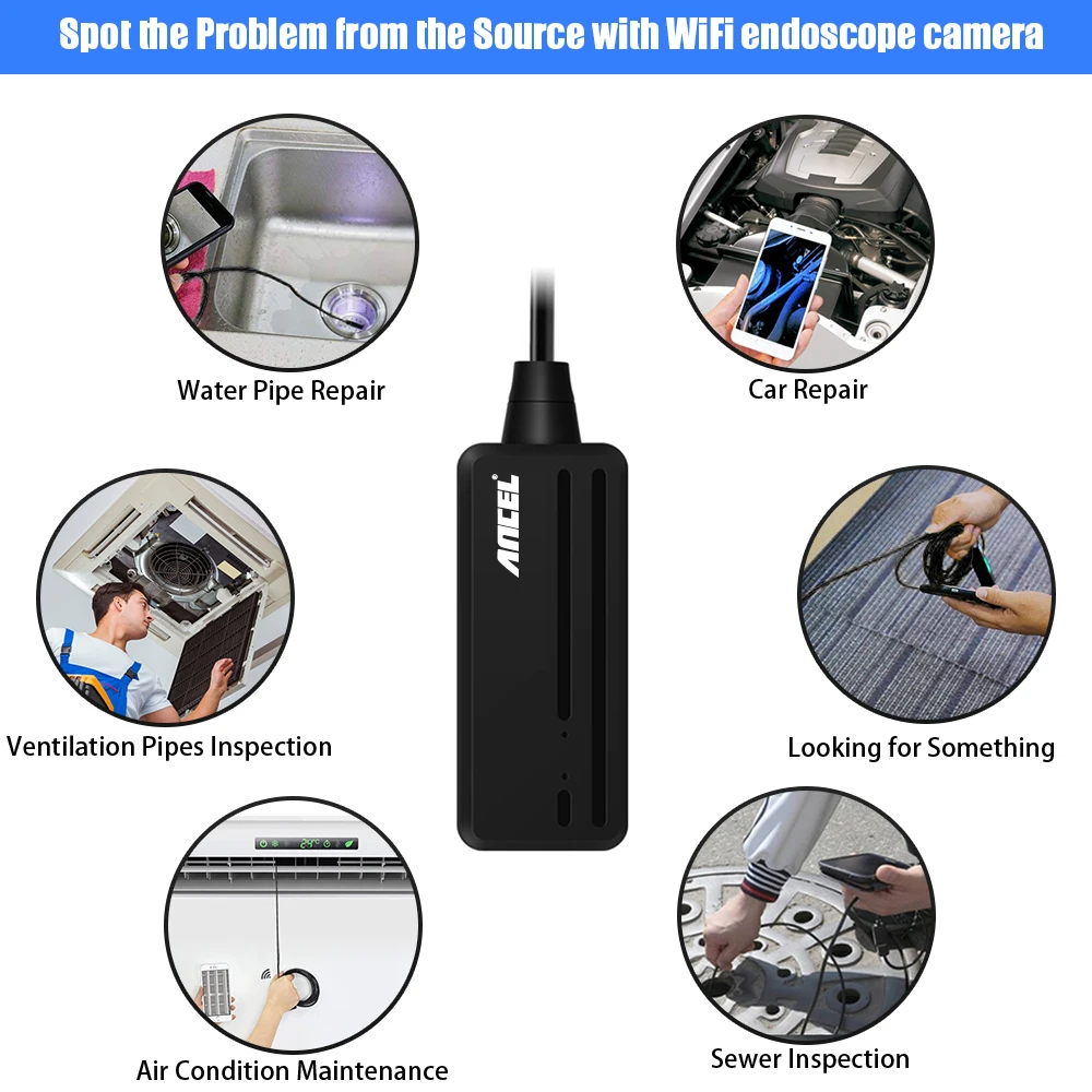 ANCEL W655 5.5mm wifi HD Endoscope Inspection Camera Waterproof Borescope 1080P 6500K 5.5mm Scanner Android IOS PC HD Endoscope