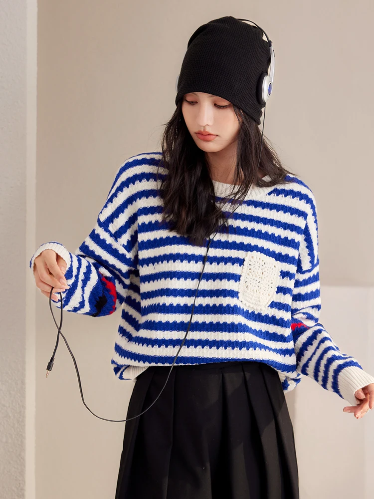 Automne Design de mode sens Niche pull femmes rayure pull Streetwear à manches longues tricoté hauts femme pull ample