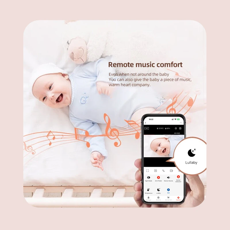 - Caractéristique: Interphone,Réseau IP,Application pour téléphone mobile,Alarme de cri de bébé,Détection de mouvement,Rappel du temps d’alimentation,Contrôle de la température,Surveillance de l’humidité,Ecran lcd,Portable,Musique