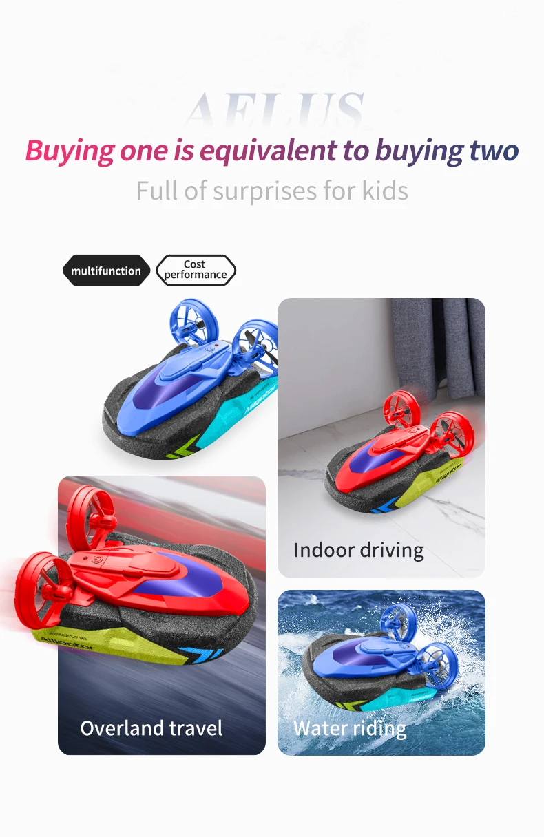 Nouveau S10 Water & Land 2 en 1 télécommande bateau à grande vitesse 2.4G aéroglisseur amphibie RC dérive voiture enfants jouets cadeaux de noël