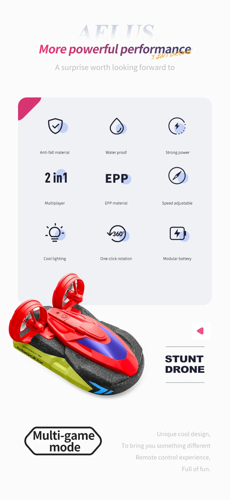 Gameplay tout-en-un, facile à utiliser, l’avion et la coque en mousse peuvent être librement combinés pour réaliser divers jeux de mer, de terre.