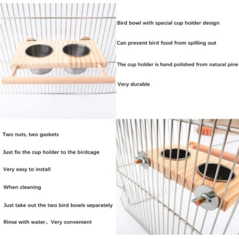 Two bird bowls with bird stands, more aesthetically pleasing to add to the decoration of the bird cage. The double bird bowl design also meets the dual needs of birds to eat and drink while enjoying the scenery.