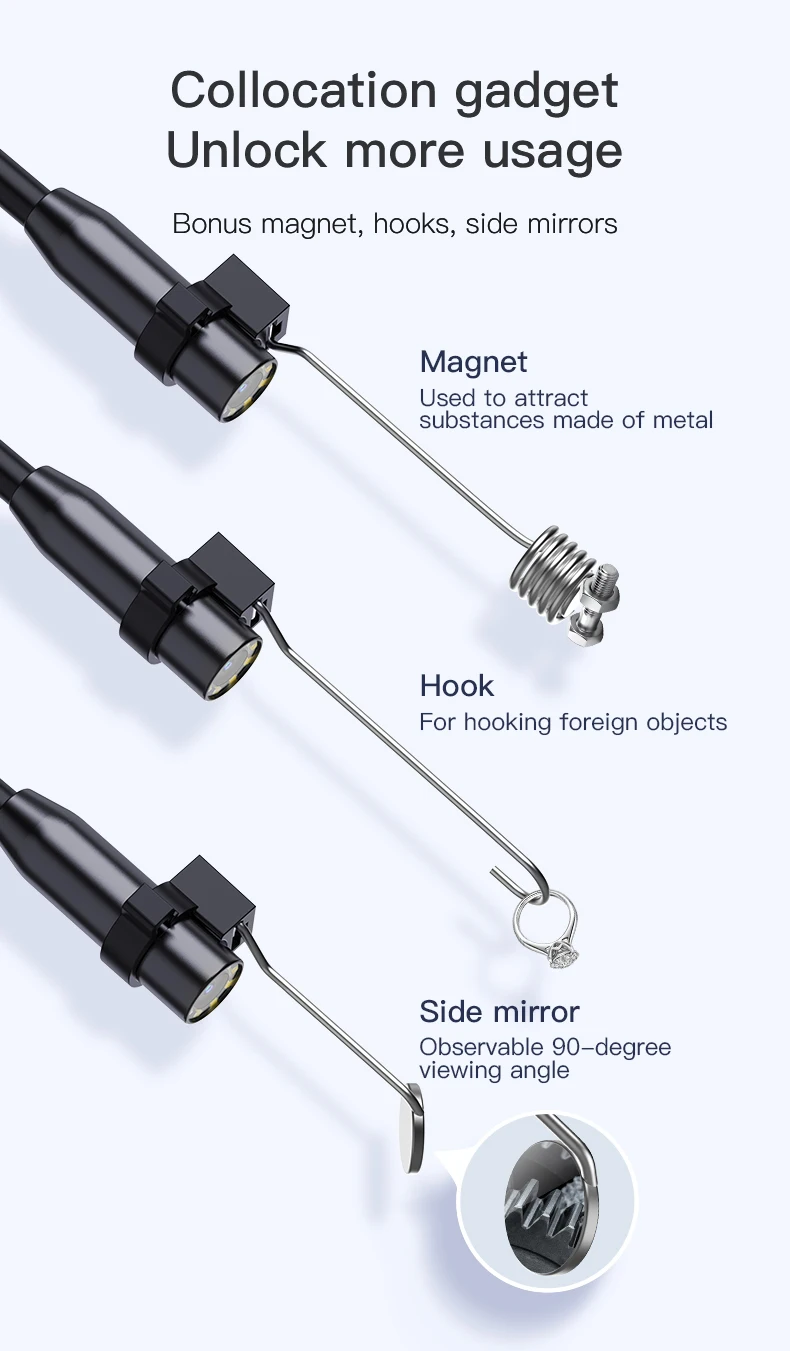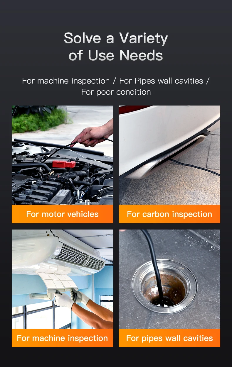 • Utilisation polyvalente:Des inspections de voiture à l’entretien de canalisation, cet endoscope est un outil souple pour diverses applications.