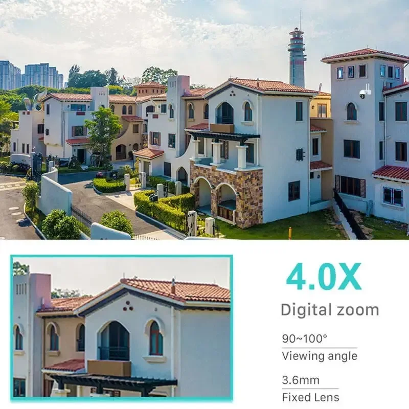 La caméra PTZ utilise le panoramique, l’inclinaison et le zoom pour fournir à la fois une couverture étendue et de grands détails avec une seule caméra.Utilisez l’application iCSee pour contrôler à distance la caméra haut/bas et gauche/droite avec moins de zone aveugle.