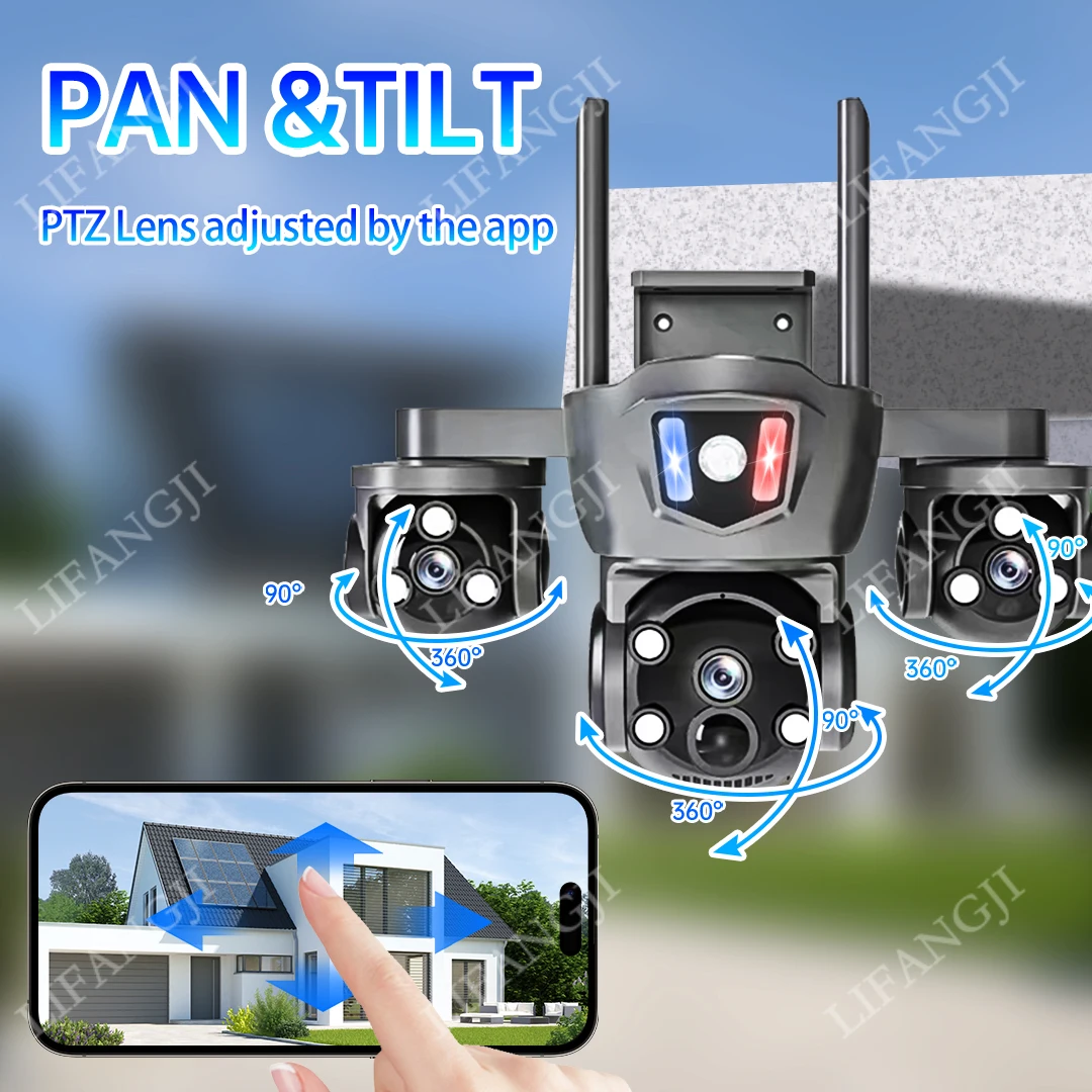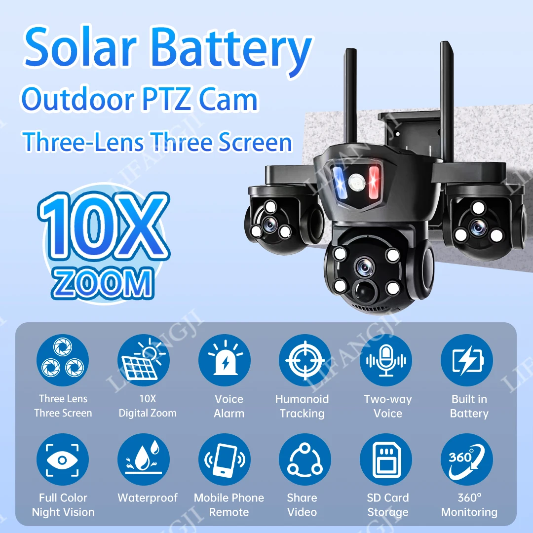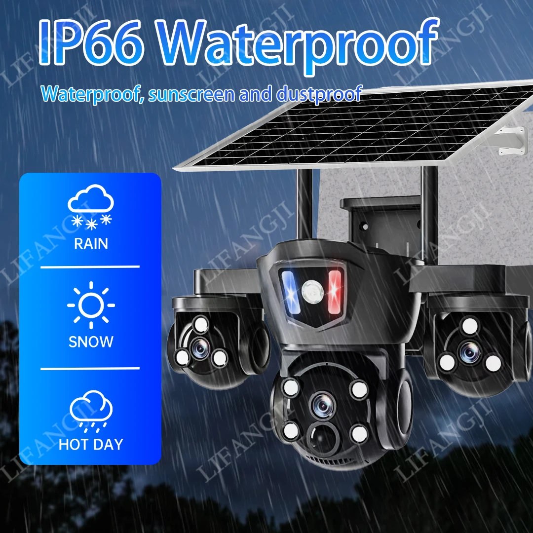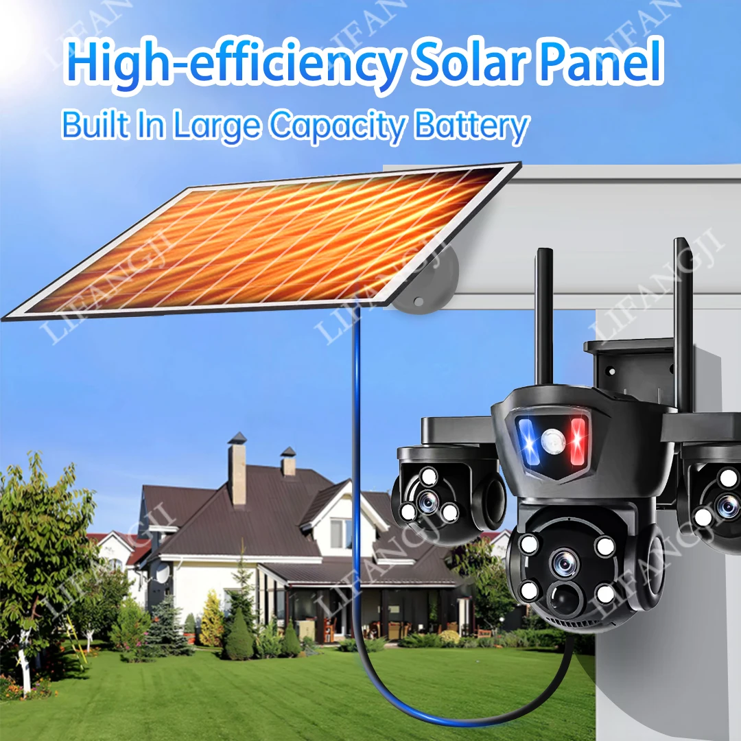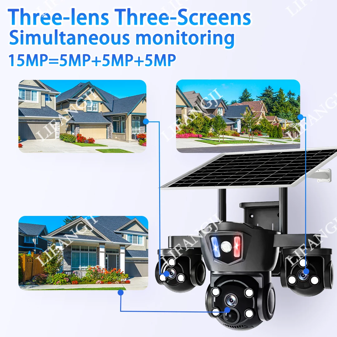 Caméra solaire 4G Sim Surveillance extérieure 3 objectifs, 3 écrans PIR détection humaine 15MP Vision nocturne