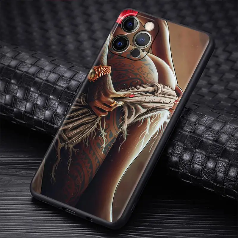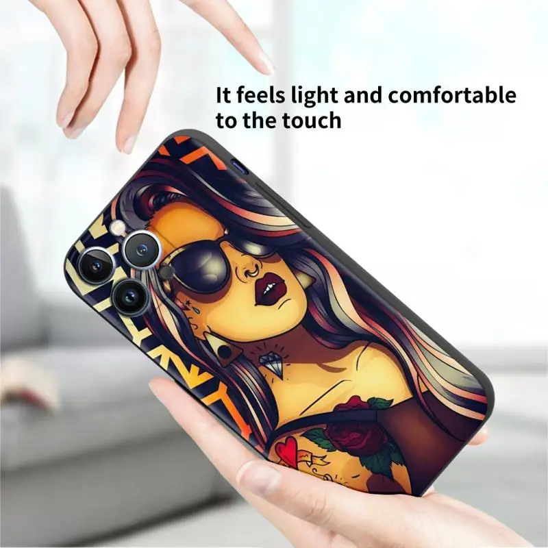 Coque de téléphone en silicone noir pour Apple iPhone, manchon sexy, tatouage fille, 11, 15, 13, 14 Pro Max, 12 Plus, X, 15Pro