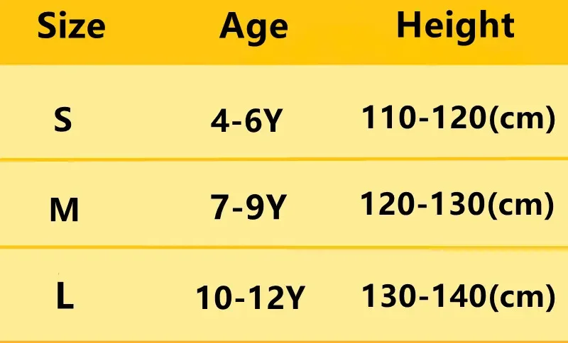 ● IMPORTANT : les costumes sont dimensionnés différemment des vêtements, utilisez le tableau des tailles pour enfants, ne choisissez pas en fonction de l’âge ou de la taille des vêtements de l’enfant.