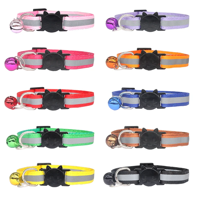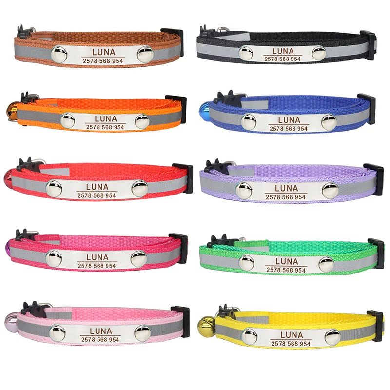 Custom Reflective Cat Collar Personalized ID Adjustable Safety Buckle with Bell Free Engraving Nylon Puppy Kittens Necklace