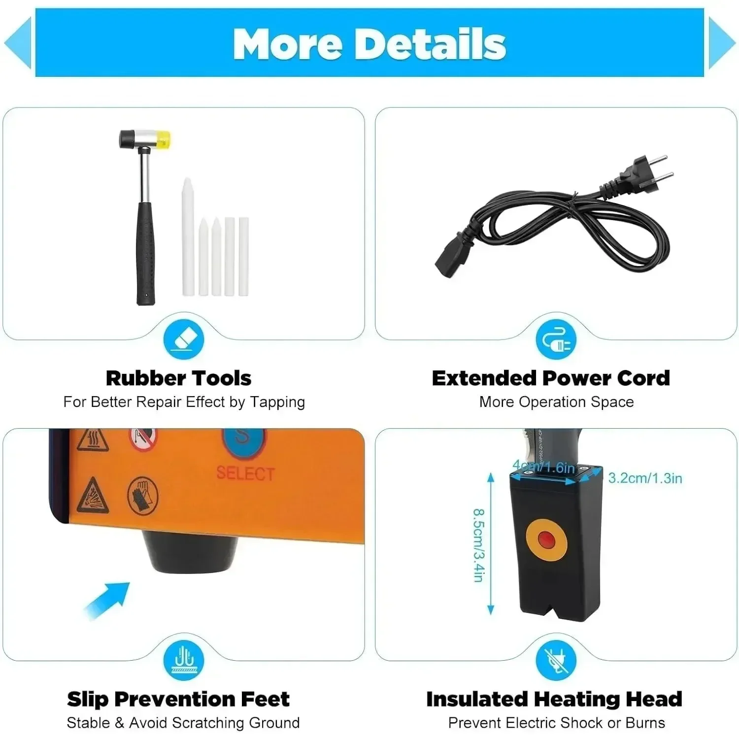 Réparation précise : le chauffage à induction avec boutons de réglage, vous pouvez sélectionner la bonne puissance grâce aux boutons plus et moins pour réparer différents degrés de bosses avec plus de précision.
