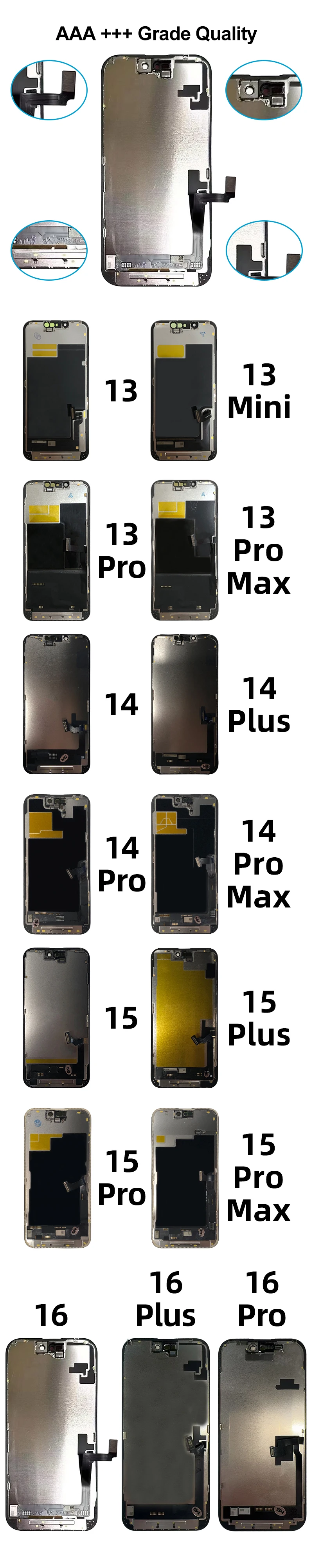 Écran LCD / OLED Grade AAAA pour iPhone X, XR, XS, 11, 12, 13 Mini, 14, 15 Plus et 16 Pro Max