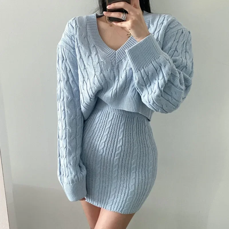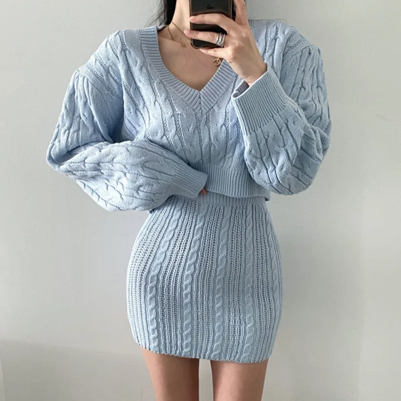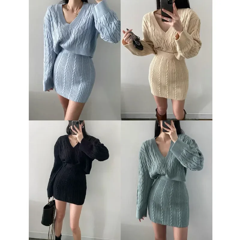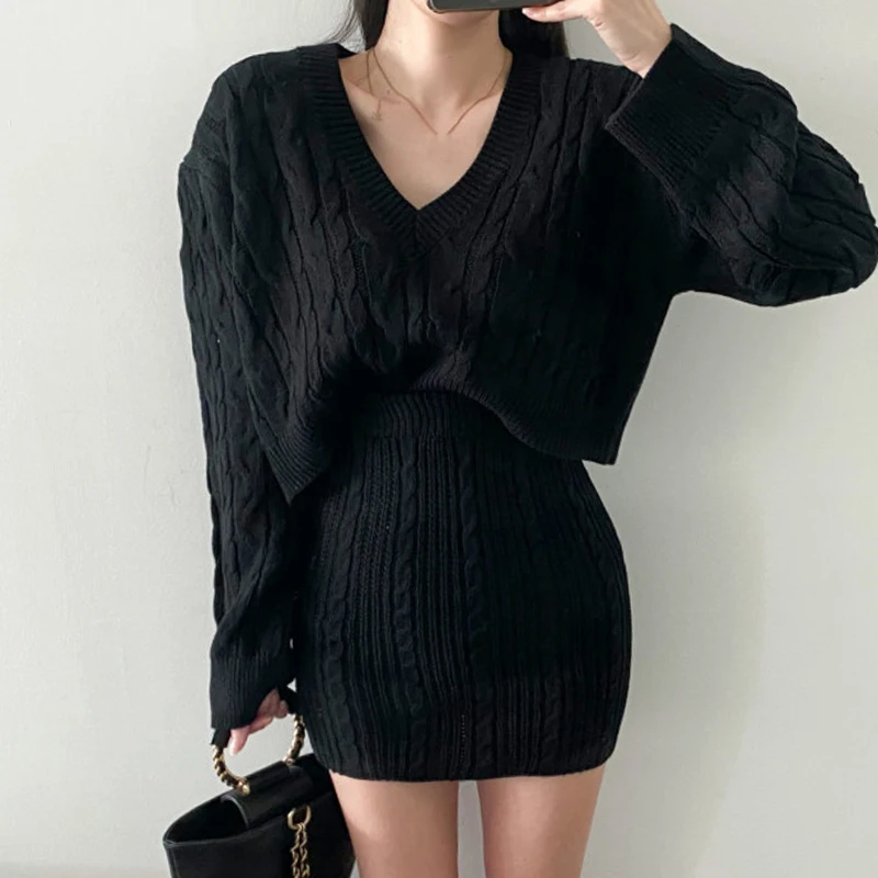 Soyez le premier à laisser votre avis sur “Ensemble deux pièces femme pull col V jupe portefeuille”