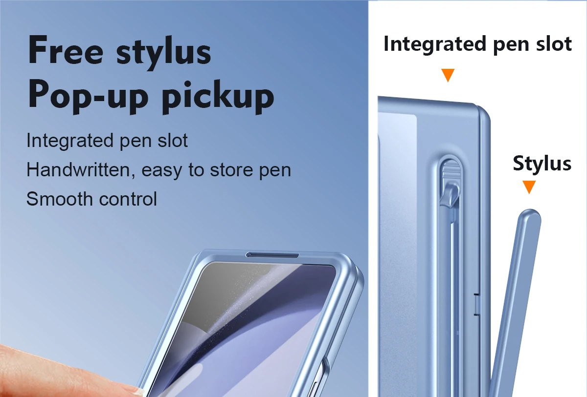 Résistant aux chutes et aux empreintes digitales| Protection de la charnière| Emplacement pour stylo + support intégré pour stylet| Film avant en verre