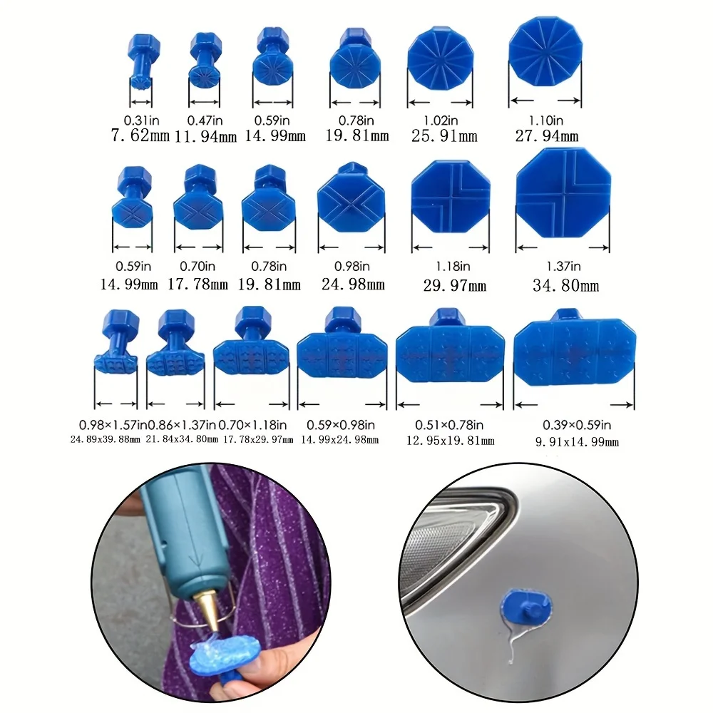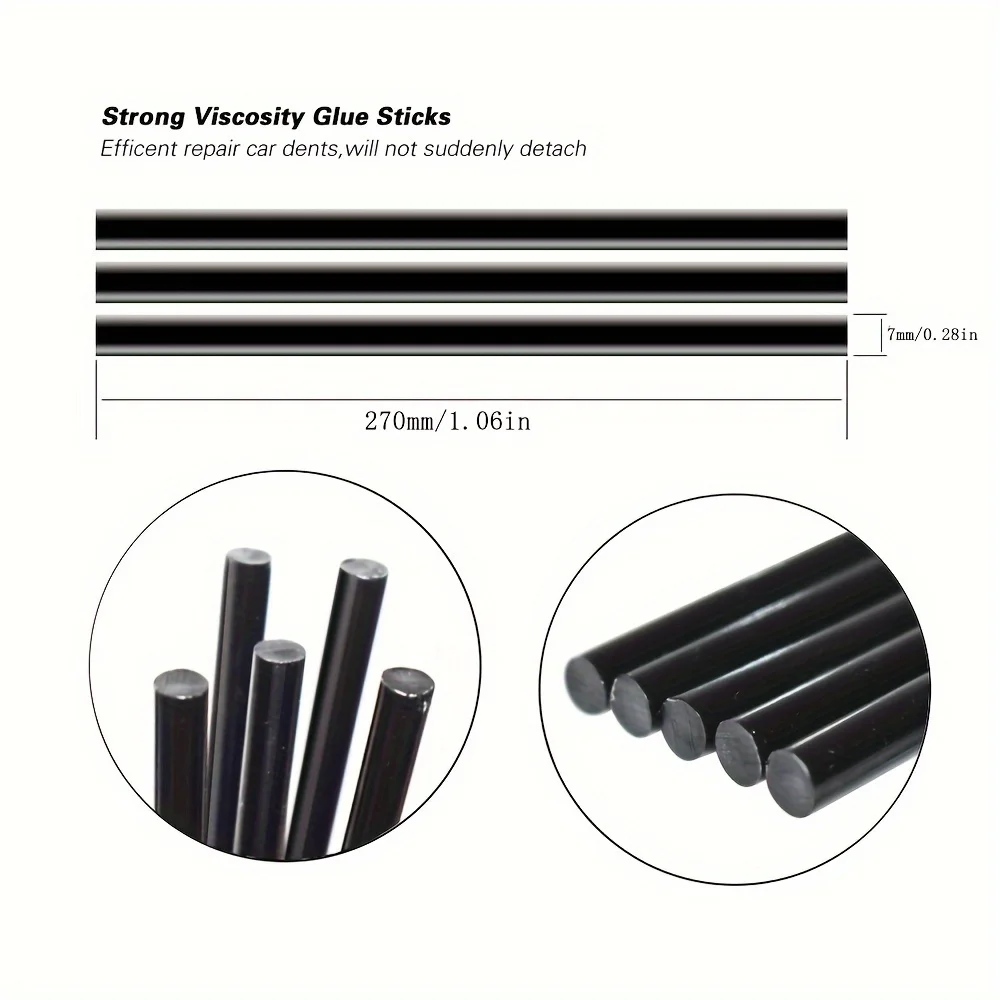 Remarque : ce produit est efficace pour les surfaces métalliques fines et ne convient pas aux surfaces métalliques dépassant 1 mm.(Nous suggérons à l’utilisateur d’utiliser un pistolet à colle thermofusible et des bâtons de colle thermofusible pour travailler avec notre outil de débosselage.)