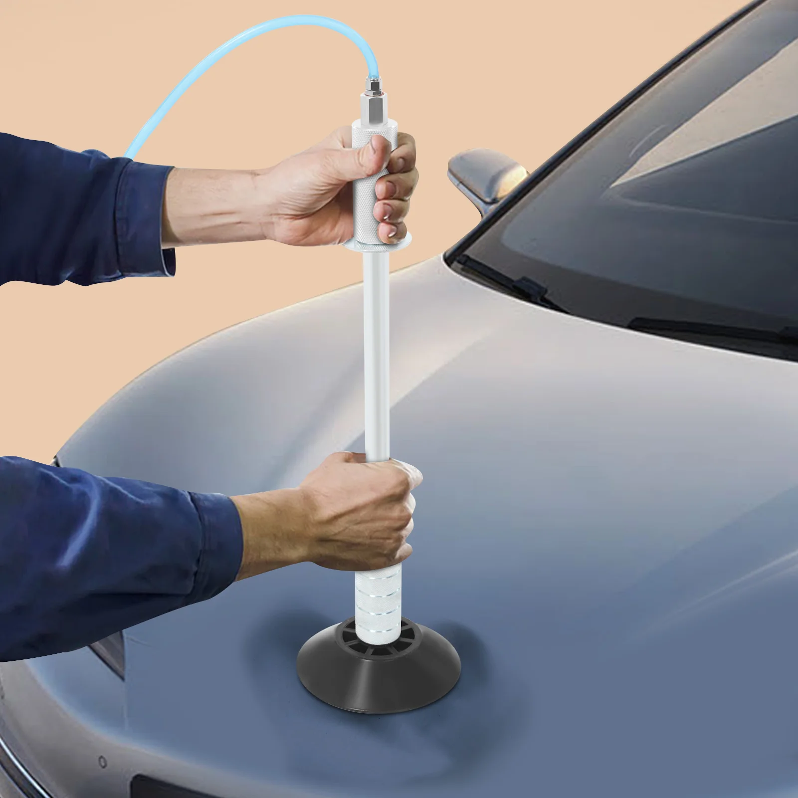 Pratique à utiliser :Il vous suffit de connecter une pompe à air (non incluse), d’allumer l’interrupteur supérieur de l’extracteur, d’aligner la ventouse avec la partie concave de la voiture, puis de tirer le marteau cylindrique de haut en bas pour le réparer.Aprèsutiliser, l’air comprimé à l’intérieur de la ventouse peut être rapidement libéré en ouvrant la valve d’échappement, ce qui facilite le détachement de l’outil de la pièce adsorbée.