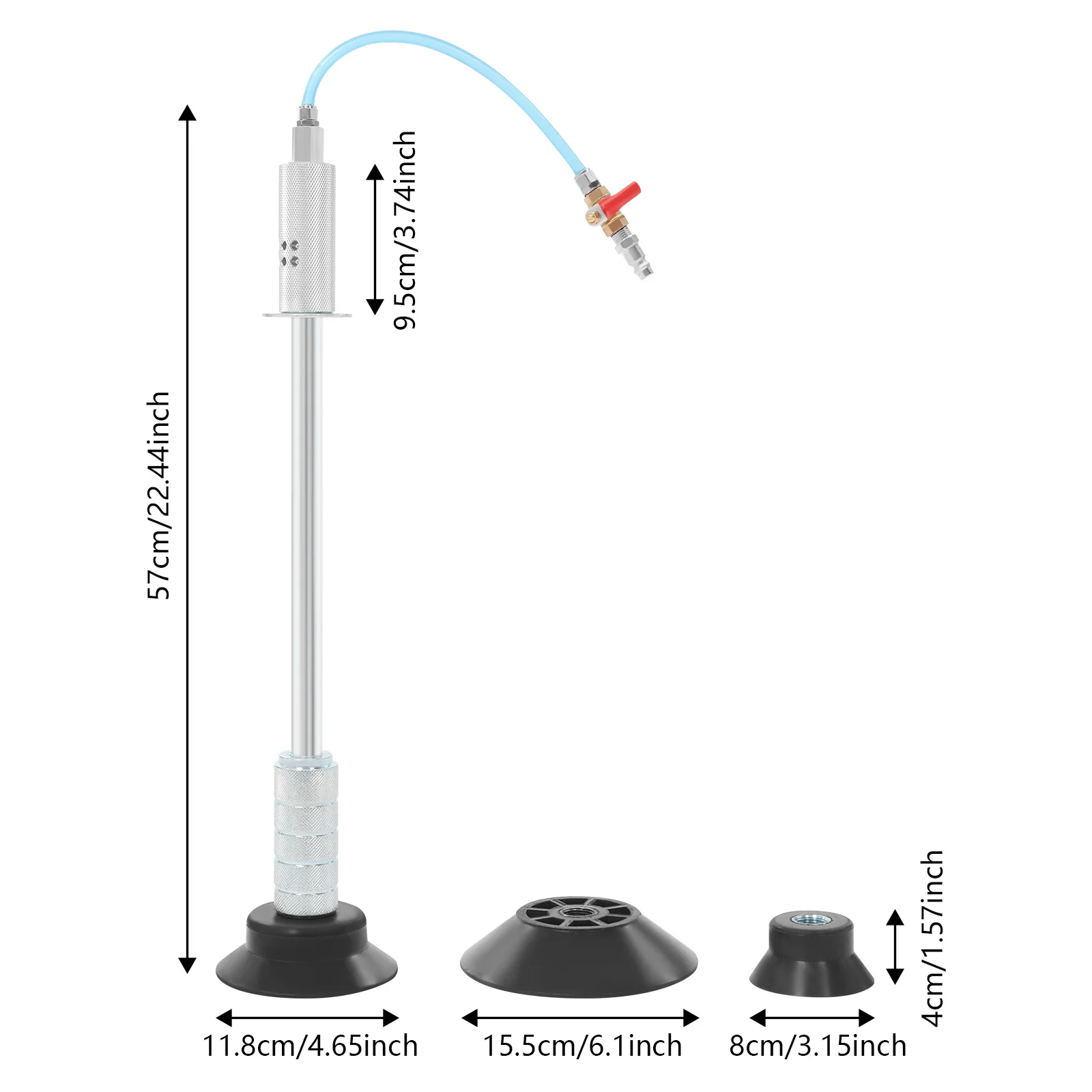 Extracteur de bosses à aspiration d’air professionnel, kit de réparation de bosses pneumatiques pour carrosserie de voiture – marteau d’extraction pneumatique en acier galvanisé robuste 70-170 psi avec 3 ventouses en caoutchouc (8/11.8/15.5 cm) pour réparer les bosses de voiture, les bosses de porte, les dommages causés par la grêle, la tôle, l’outil de réparation de carrosserie automobile à domicile + ruban PTFE (pompe à air non incluse)