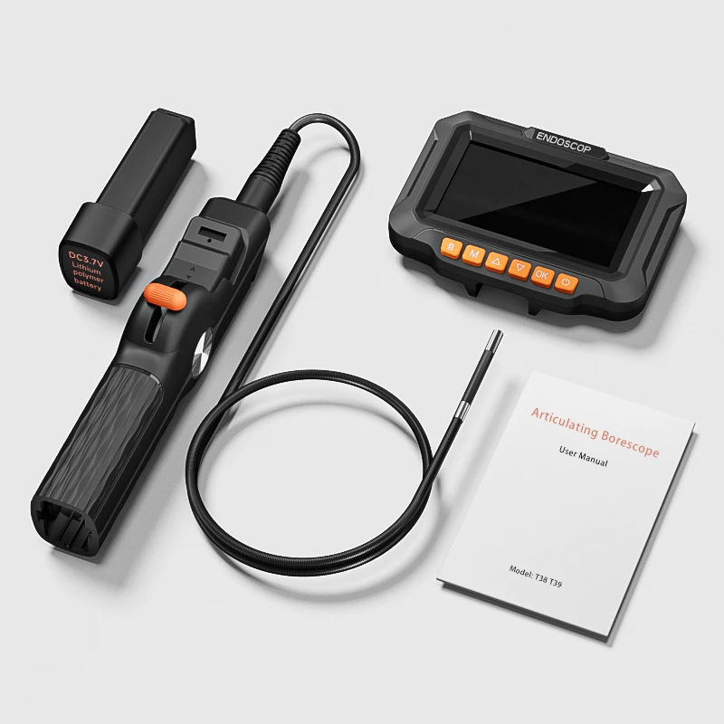 Joystick d’endoscope articulé bidirectionnel 360 ° 180 ° Caméra de direction rotative, écran 4.3 pouces, Endoscope d’inspection de tuyaux HD1080P