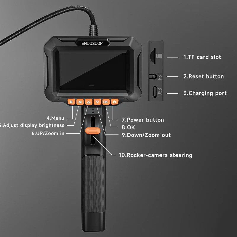 Joystick d’endoscope articulé bidirectionnel 360 ° 180 ° Caméra de direction rotative, écran 4.3 pouces, Endoscope d’inspection de tuyaux HD1080P