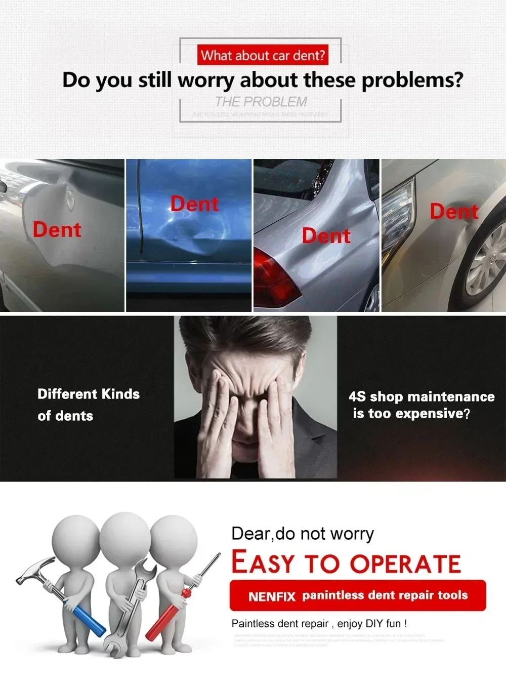 - Type 2: Car Dent Repair Tool Kit Auto bodywork tool Hail Remover Hook Rods Car