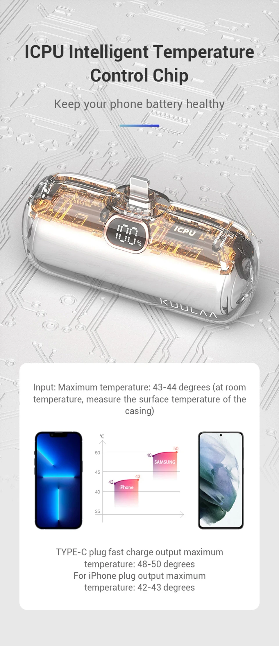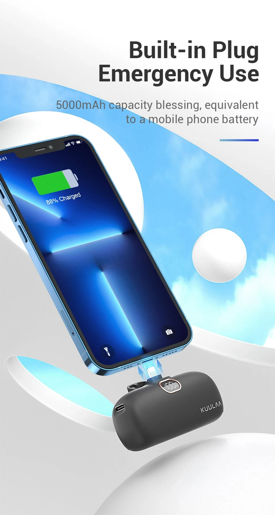 KUULAA-Mini Power Bank, 5000mAh, Chargeur Portable, Batterie Externe, Charge Rapide, QC, PD, iPhone 16, 15, 14, 13, Xiaomi