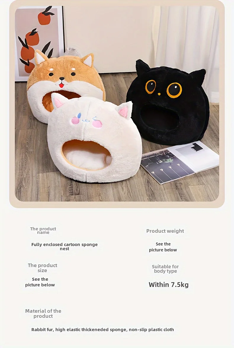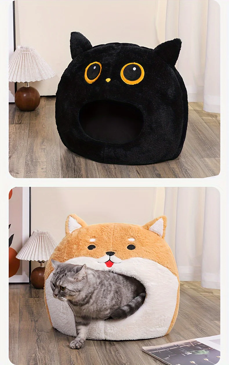 Lit pour animaux de compagnie confortable sur le thème du hibou noir adapté aux chats et aux chiens de petite et moyenne taille – nid doux et fermé toutes saisons