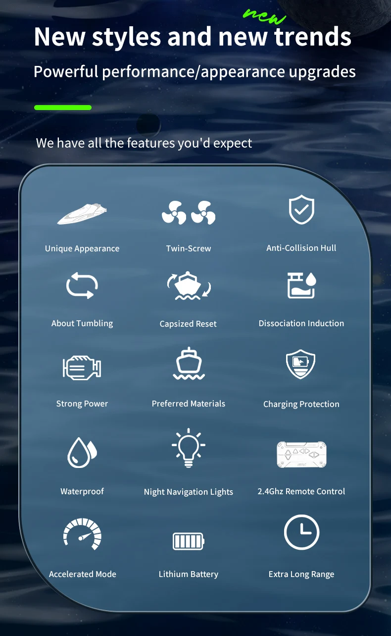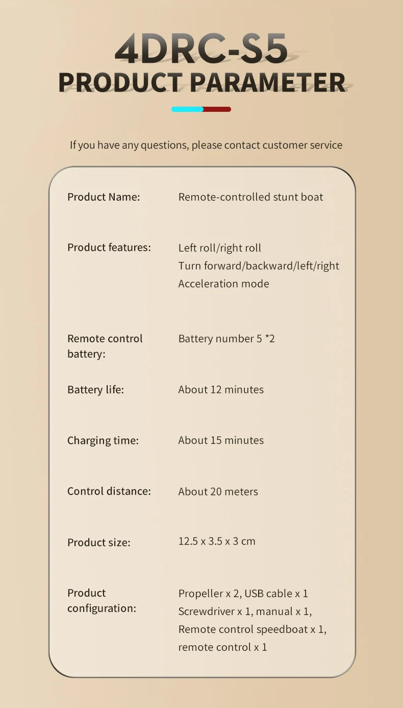* This product has forward, backward, left turn, right turn, high speed and low speed, large and small rudders.