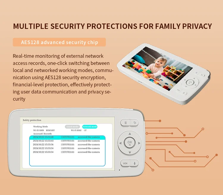 - WiFi Protocol: 2.4Ghz+BLE WiFi Baby Monitor