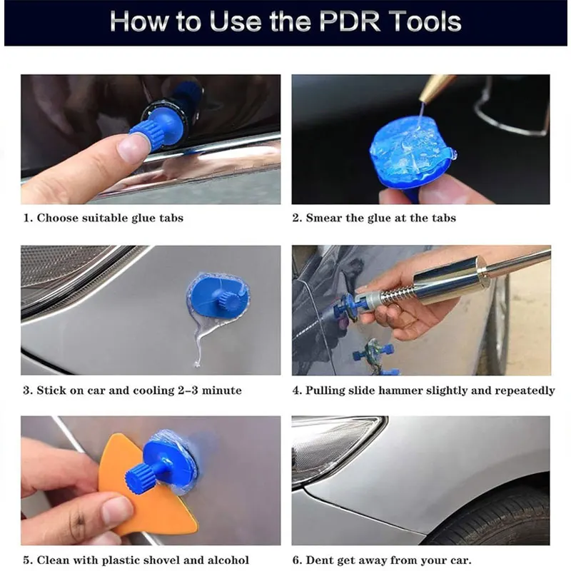 Ventouse pour enlever les bosses de voiture non seulement utilisée dans le débosselage de voiture, mais également appliquée à tous les aspects quotidiennement dans des situations similaires sur la surface métallique qui subit des problèmes tels que les motos, les réfrigérateurs, les machines à laver, les portes d’armoires en métal et de nombreuses surfaces métalliques plates.