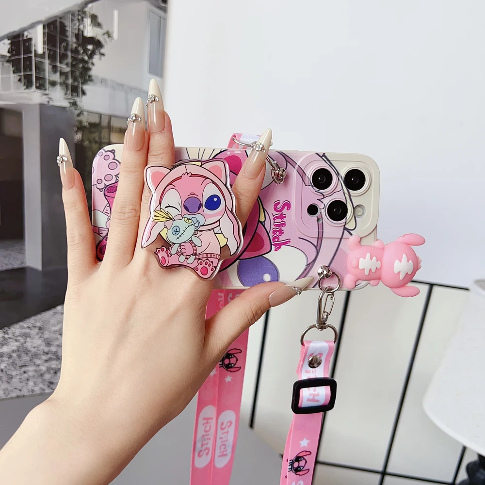 Pour iPhone 16 15 14 13 12 11 XR Xs 8 7 6 Pro Max mini Plus e étui à points de sucette avec corde de support