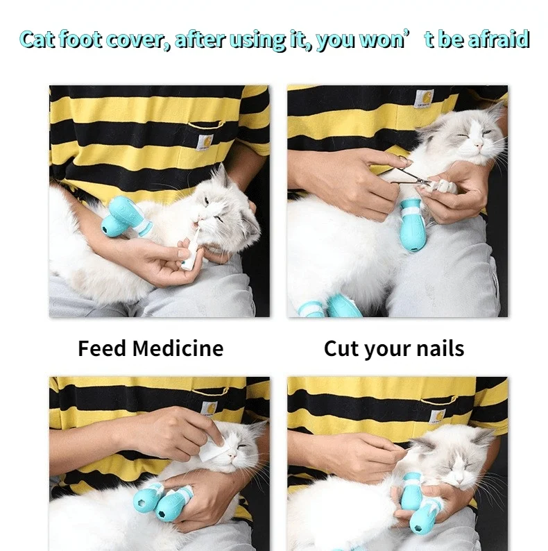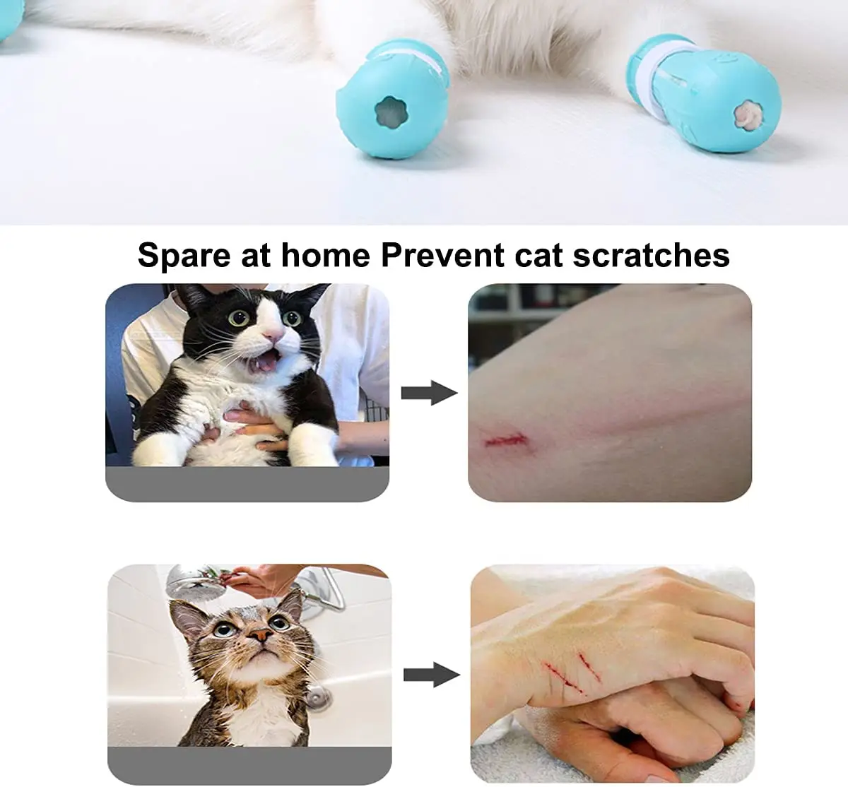 Large gamme d’utilisation : les bottes de protection peuvent envelopper les griffes du chat, lorsque vous consultez un médecin, vous rasez, vérifiez, traitez, cela pourrait empêcher le chat de se gratter avec des griffes.