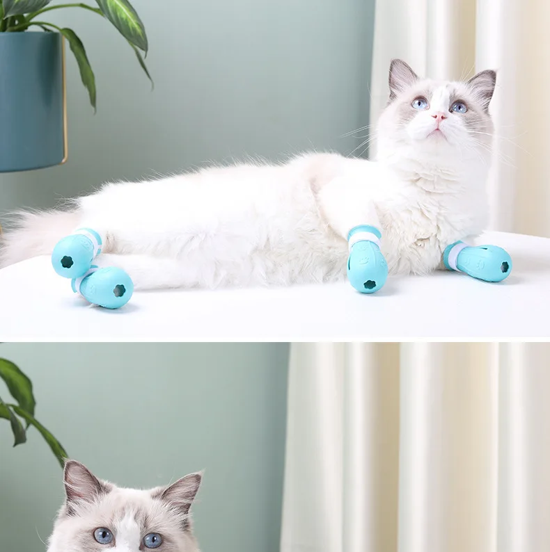 Chaussures de pied réglables : l’autocollant magique à l’ouverture de la tête offre un ajustement sûr pour éviter les rayures et peut être ajusté pour s’adapter à la plupart des chats.Avec un design supplémentaire qui empêche l’autocollant de glisser.