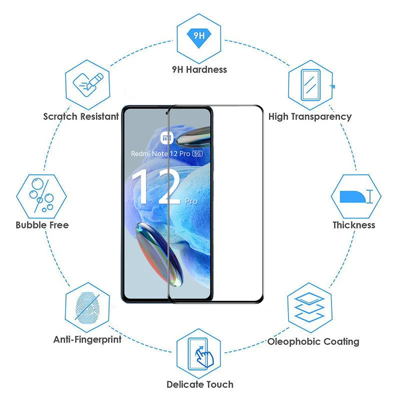 - For Redmi Note 12 Pro: Redmi Note 12 Pro Tempered Glass