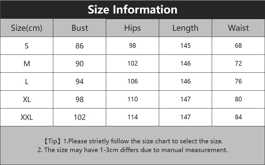 Remarque :Cette robe n’a pas d’élasticité évident. Si vos mensurations (en particulier le tour de poitrine et de taille) sont très proches d’une taille dans notre tableau des tailles, ou si vous souhaitez plus de place pour bouger lorsque vous le portez, nous vous recommandons de choisir une taille une taille au-dessus de votre taille habituelle.