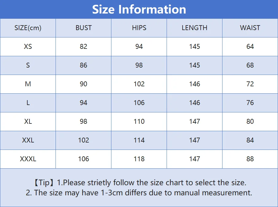 Remarque :Cette robe n’a pas d’élasticité évident! Si vos mensurations (en particulier le tour de poitrine et de taille) sont très proches d’une taille dans notre tableau des tailles, ou si vous souhaitez plus de place pour bouger lorsque vous le portez, nous vous recommandons de choisir une taille une taille au-dessus de votre taille habituelle.