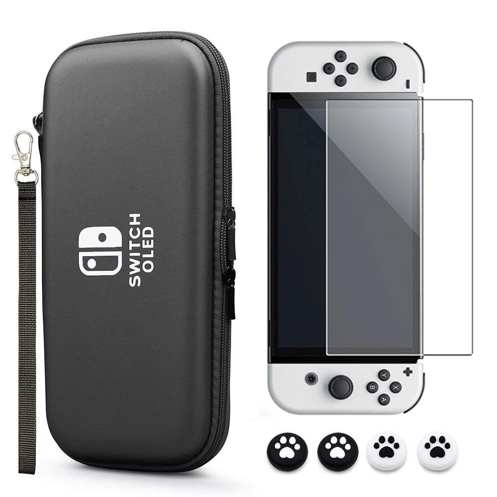 Y compris 1 sac + 1 film de verre + 4 capuchons de joystick pour Nintendo switch oled