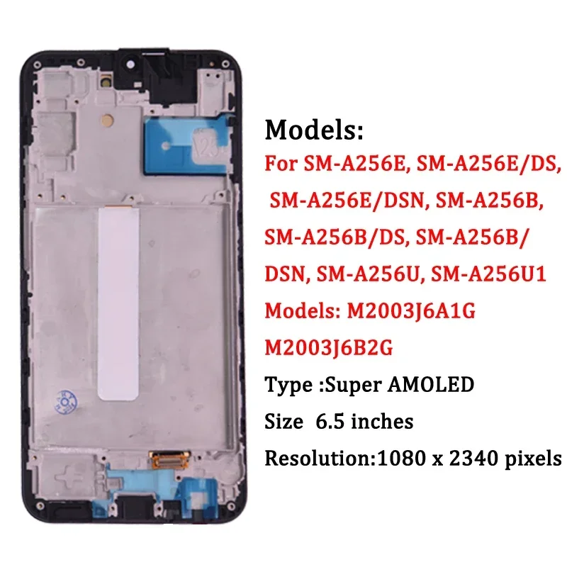 Super AMOLED For Samsung A25 A256 LCD With Frame Display Touch Screen Digitizer For Samsung A25 A256B A256E A256U LCD