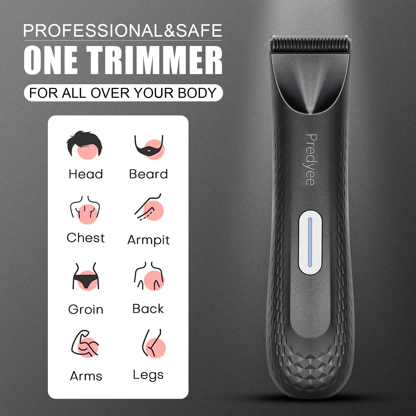Tondeuse électrique pour poils d’aine des hommes : toiletteuse corporelle polyvalente et tondeuse pubienne étanche avec lame en céramique remplaçable